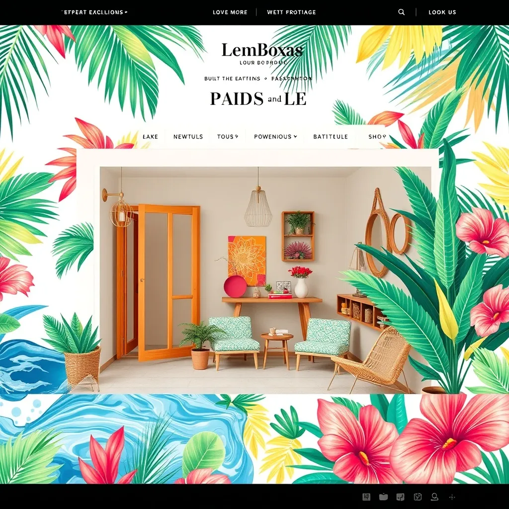 An e-commerce site with vibrant tropical patterns, built in minutes for a local Puerto Rican boutique, highlighting colorful visuals and ocean-inspired colors.